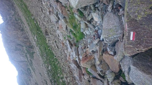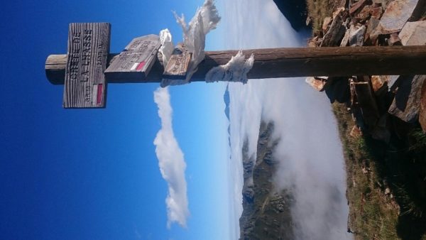 Nach einem Selbstversorger Frühstück im Refuge mit Kopflampe (war noch sehr früh und der Lichtschalter ist in einem Raum, der noch abgeschlossen war), ging es gegen 07.15h los. Zwischenziel war Col de la Lhasse, auf 2438 Meter Höhe – also Aufstieg. Es wehte wieder ein kräftiger Wind, der mich zeitweise ins Wanken brachte. Der Weg führte teilweise über ein großes Geröllfeld aufwärts, zeitweise verlor ich den Weg aus den Augen und bin einfach den Hang hochgeklettert bis ich wieder auf dem Pfad war – gepriesen sei die Navigation :-).